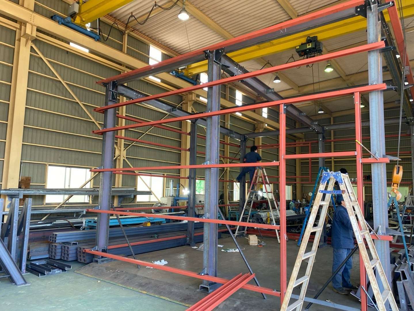 弊社では大きな自社工場を2つ、さらに倉庫も保有しているため資材も豊富で、柔軟な対応が可能です。さらにコストを抑えた製作を行うことが可能なため自社工事をなるべく行いコストの軽減に努めています。